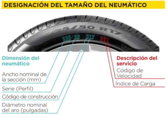 Todos los neumáticos en el perfil (al costado) tienen una serie de números que integran la medida (ancho – perfil – radial)