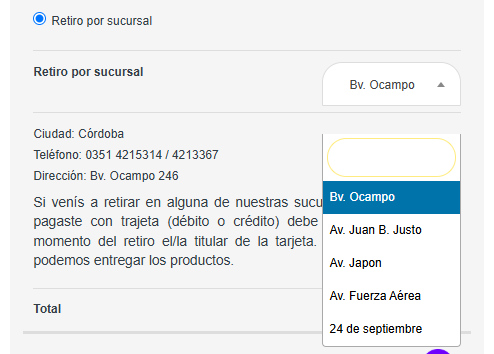 Una vez que completas los datos de envío, podes elegir la sucursal más cercana